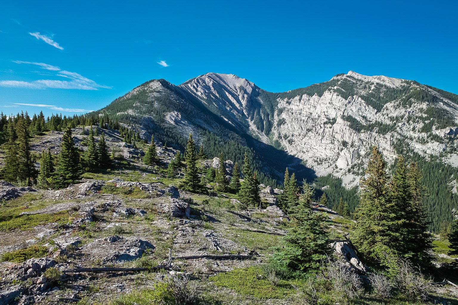 Taking advantage of my temporary bachelor status, I took Thursday July 10 2008 off work and drove down to the Crowsnest Pass area to do an interesting and short scramble – Thunder Mountain. Why is this mountain interesting? Well, it’s the first mountain in the Canadian Rockies climbed by a non-aboriginal. I thought that was cool. Thanks to Bob Spirko’s trip report and first hand accounts from Wietse and Keith, I knew that it was a good solo objective too. First of all, it’s not a super-long trip. Secondly, it’s not very difficult and thirdly, it’s mostly a ridge walk so there’s less chance of running into angry mammals on the way.