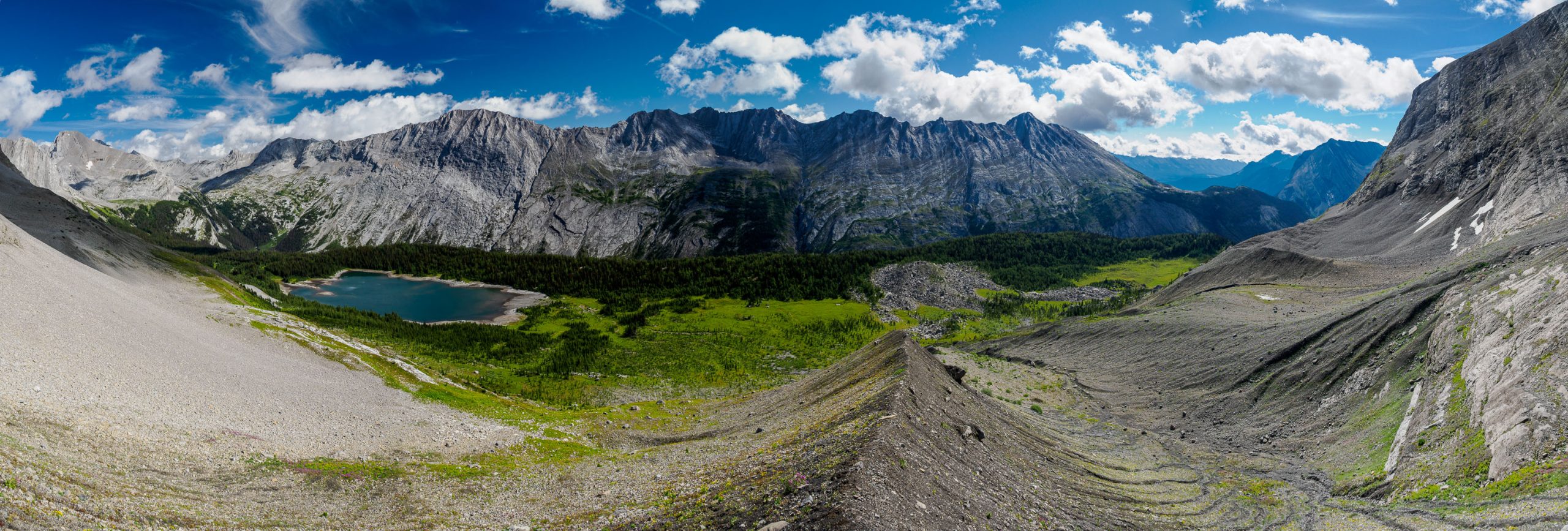 I quickly passed the large group and found myself alone on the trail again as it followed the Upper Kananaskis River for a short stretch and then started gaining serious height up avalanche slopes east of Mount Putnik. I had fond memories of this trail from over two decades previous when I was last up here, leading a group of school kids on a hike from our base camp at Forks Campground. The sun was warm and I felt great as I continued up switchbacks and through stands of mature forest.