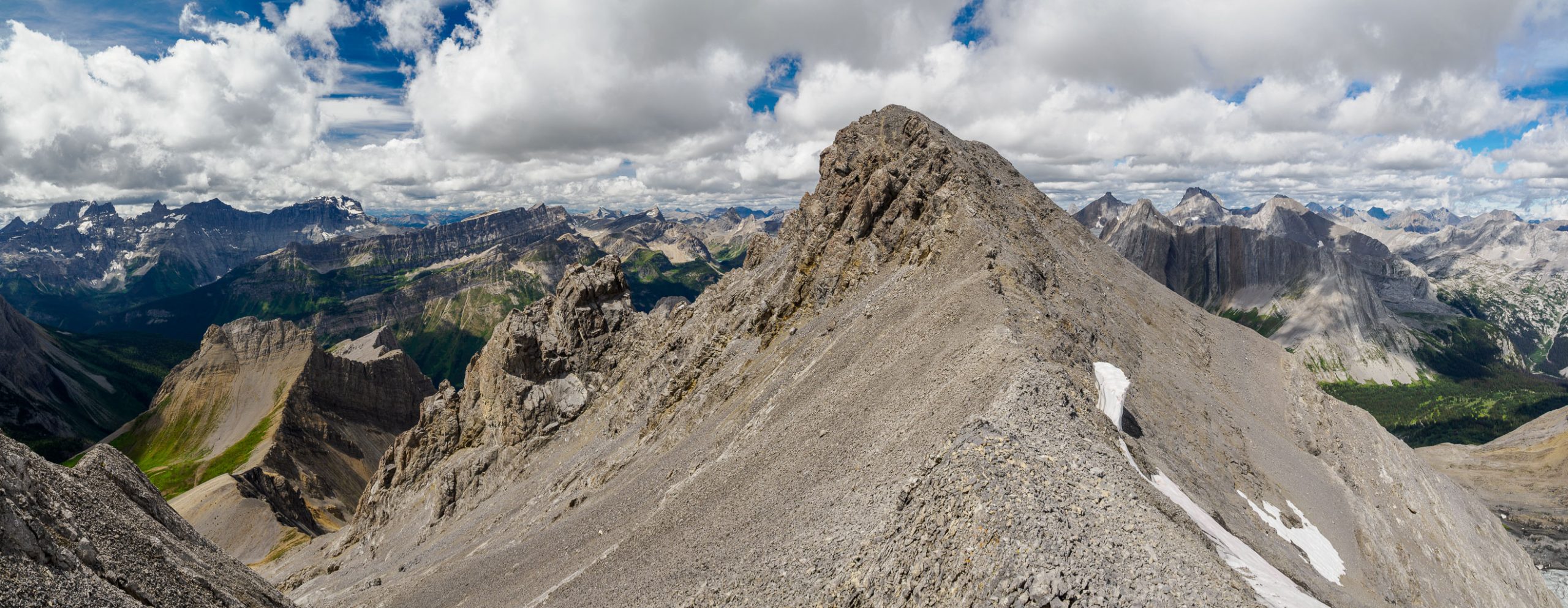 Some tricky bits of ridge later and I was striding to the main summit of the day with dramatic beauty in all directions. Tipperary Lake, the Royal Group and Sir Douglas stole the show, but many other familiar and unfamiliar peaks presented themselves as well.