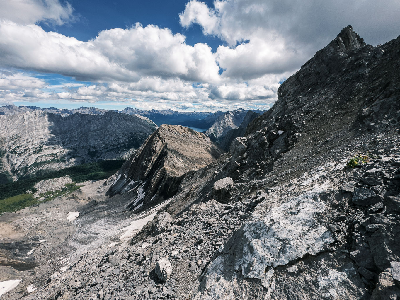 Some tricky bits of ridge later and I was striding to the main summit of the day with dramatic beauty in all directions. Tipperary Lake, the Royal Group and Sir Douglas stole the show, but many other familiar and unfamiliar peaks presented themselves as well.
