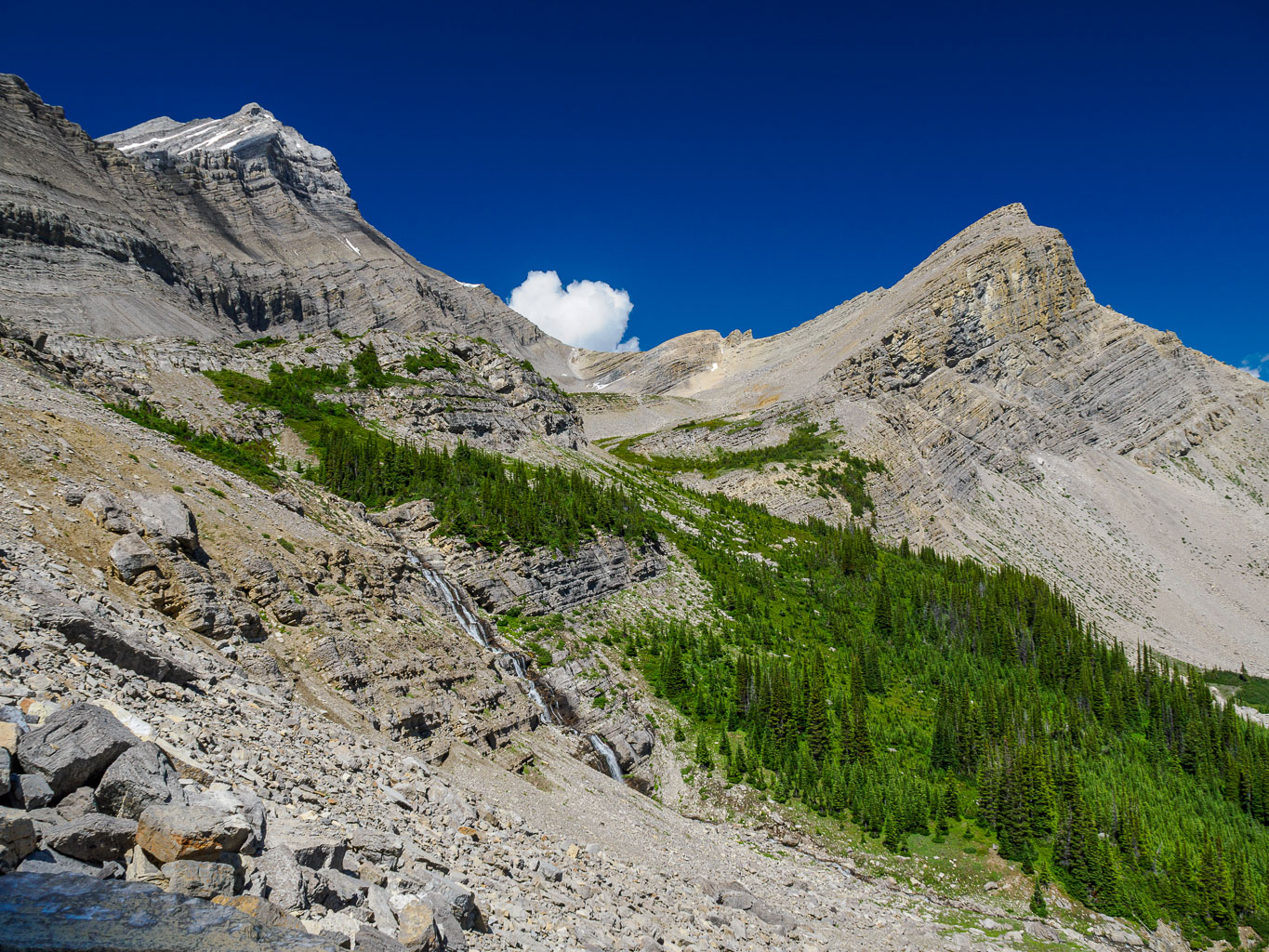 Dramatic views of outlier peaks of Mount Burwash as I ascend the headwall.